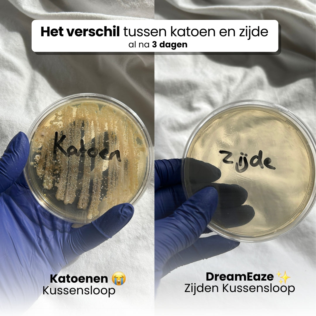 Geniet van gezonder en zachter haar met onze zijden kussenslopen. In tegenstelling tot katoen vermindert zijde wrijving en voorkomt het klitten en haarbreuk. Dit helpt om gespleten haarpunten te voorkomen en behoudt de natuurlijke glans van je haar. Daarnaast is zijde zacht voor je huid. Het minimaliseert slaapvouwen en voorkomt dat vocht uit je huid wordt onttrokken. Zo word je elke ochtend fris en stralend wakker, terwijl je huid gehydrateerd blijft.